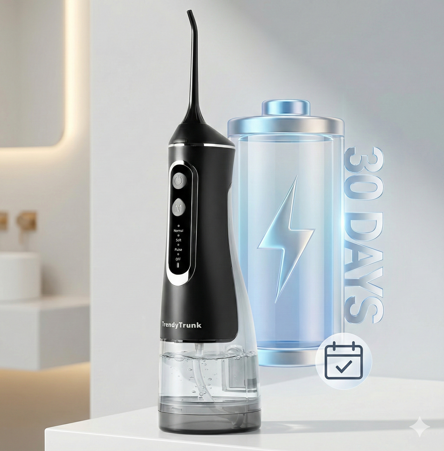 Enjoy Up to 30 days of flossing from a single charge with FABLUSS Flosser.